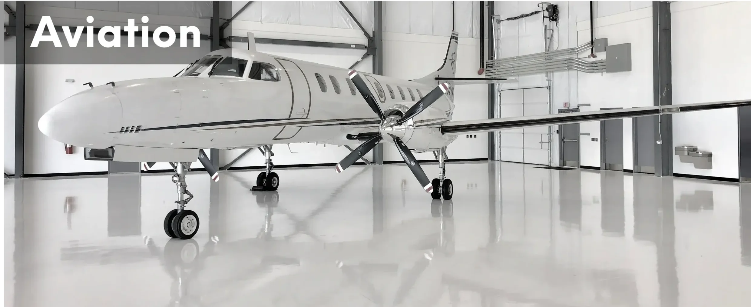 Aviation maintenance hangars and manufacturing facilities often require high performance floor coatings to ensure a cleanable work space and keep harsh chemicals, (fuels, grease, oils) from penetrating into the concrete. If not coated with the right floor system, the concrete can absorb dangerous chemicals and cause permanent stains, and even create safety hazards. Epoxy and Urethane floor coatings are the most common floors you will find in an aircraft hangar. In most situations, a slip resistant, non-porous floor coating will take care of any chemical attack, and provide a great looking, long lasting solution.